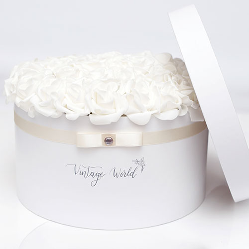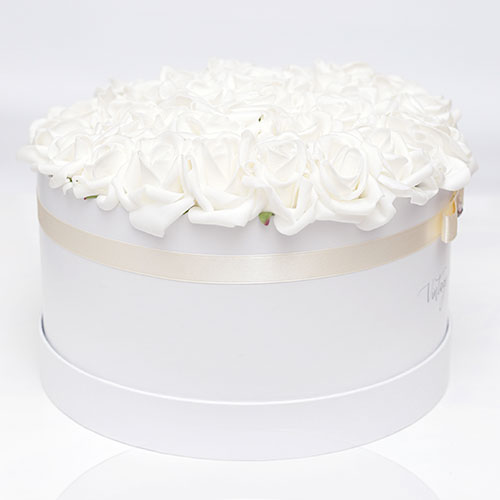 Like beautiful London Eye never stops rolling, our circle shaped, all-white London foam rose box refers to never-ending love and eternity.