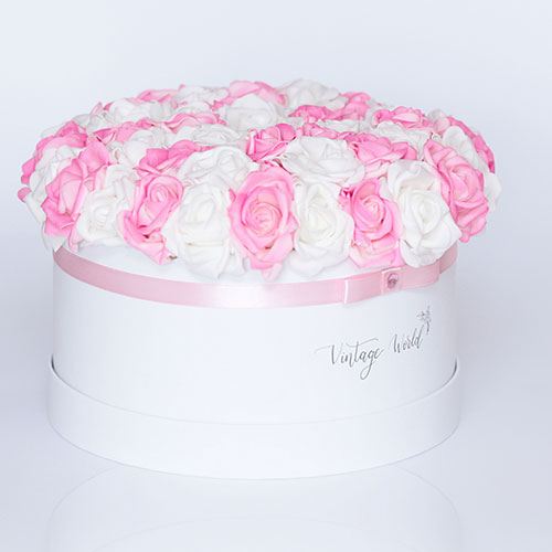 Just like South Florida’s premier vacation destination, our 35 pieces Miami foam rose box is exclusive and unique. Amazing mixture of white and pink foam roses sitting in a beautiful white box: an elegant and lovely way to show our love.