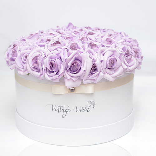 Our purple-colored 50 pieces foam rose box is also a balance of vibrant red and calm blue. This lovely Provance Vintage World rose box is a great present to those who’re addicted to extraordinary gifts. Also an amazing home decoration, an accessory that makes a grey-toned classy living room to sparkle.